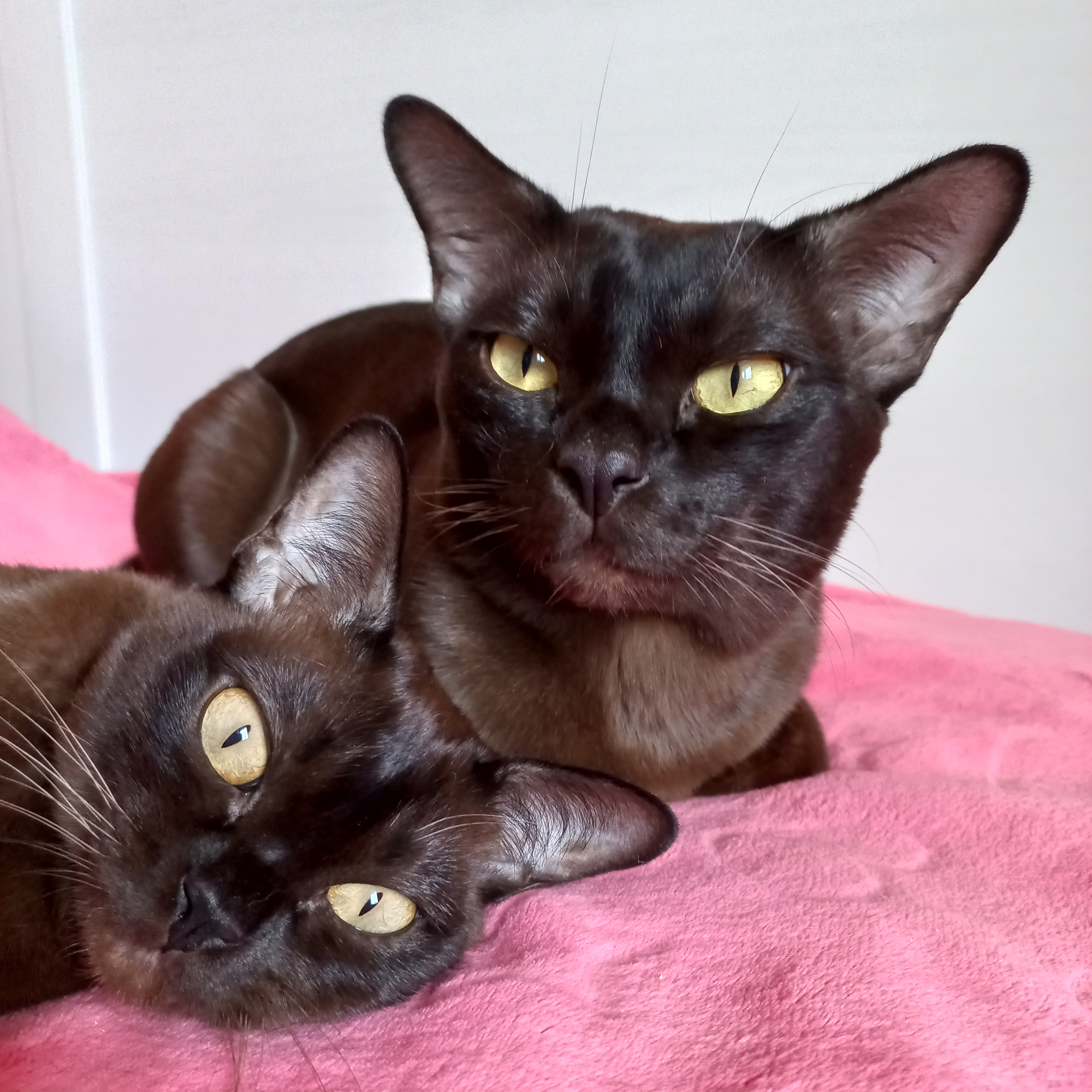 Взрослая бурманская семья в составе двух хвостов - коричневого котика Кренделя и шоколадно-красной черепаховой кошечки Хлопы желает познакомиться и воссоединиться с